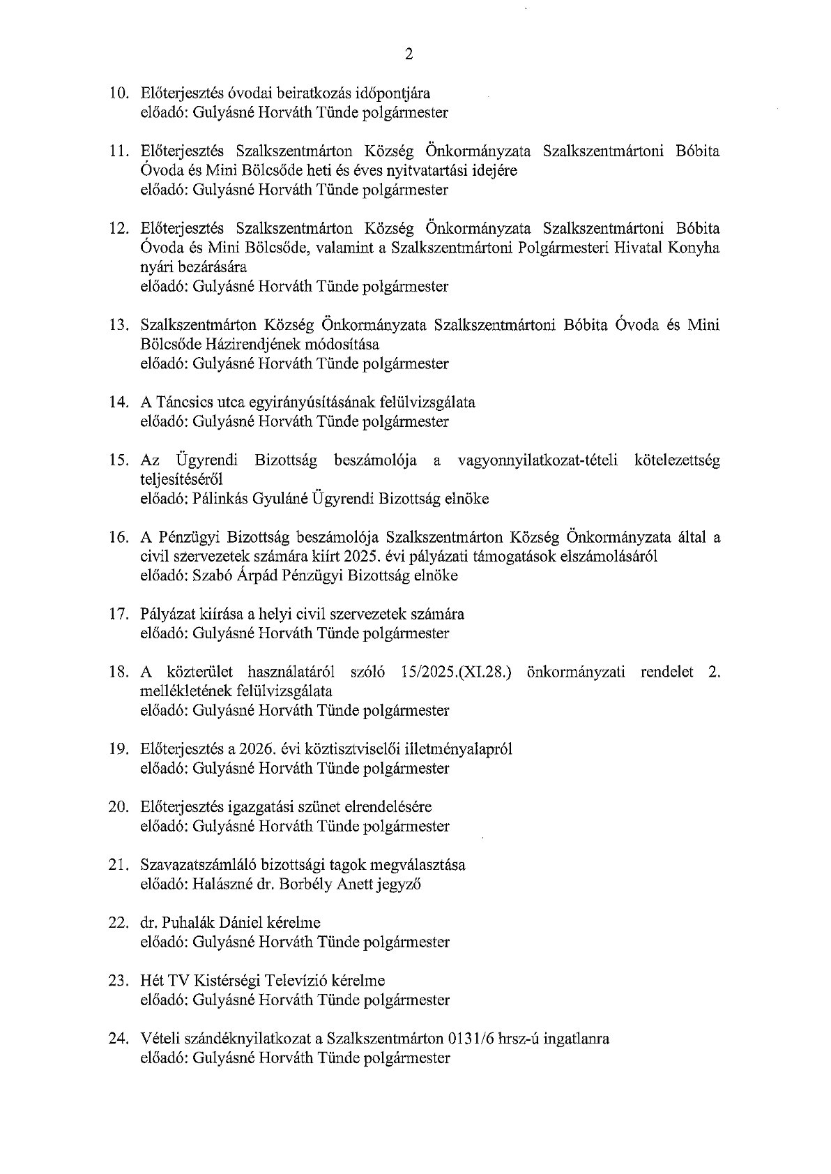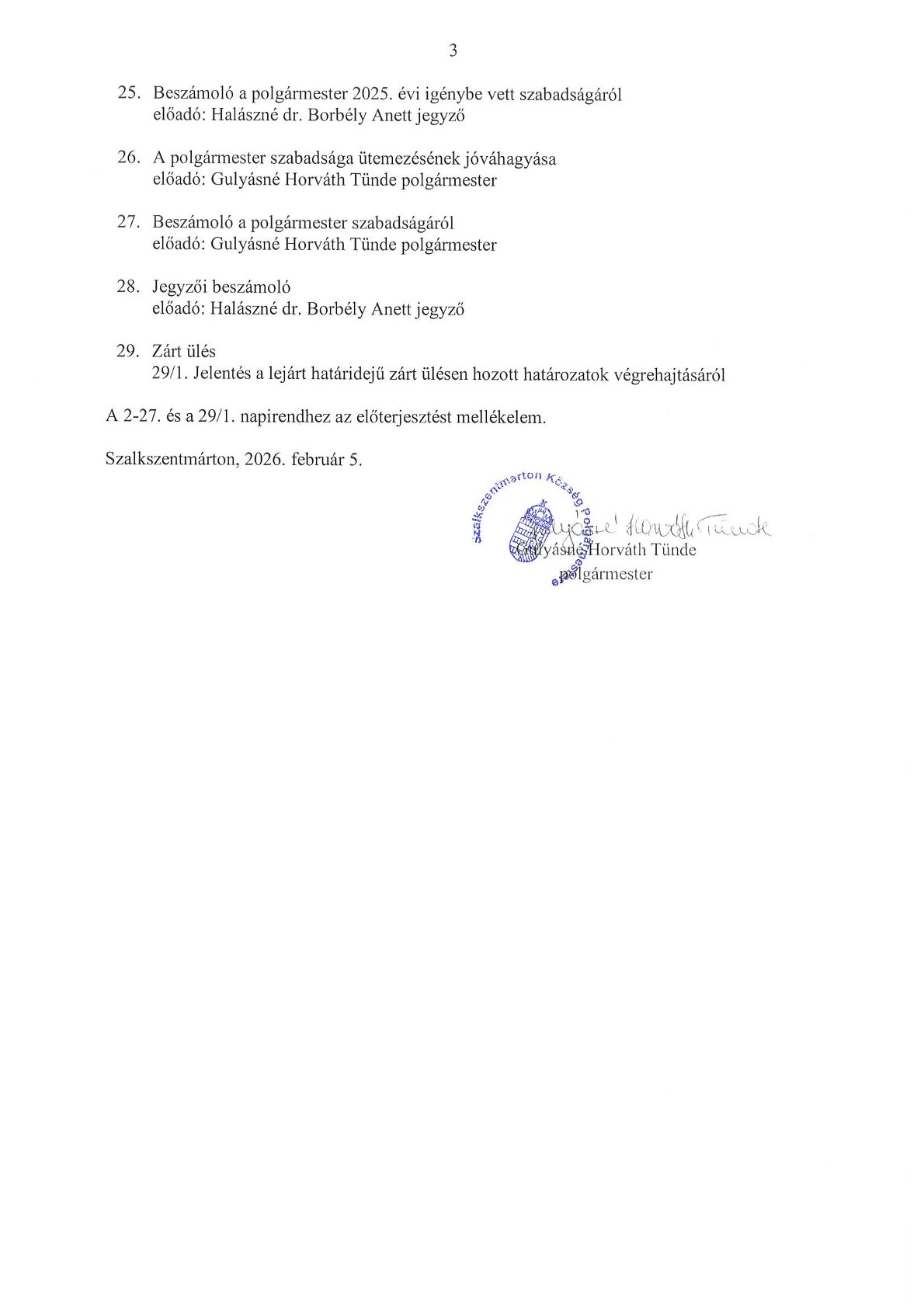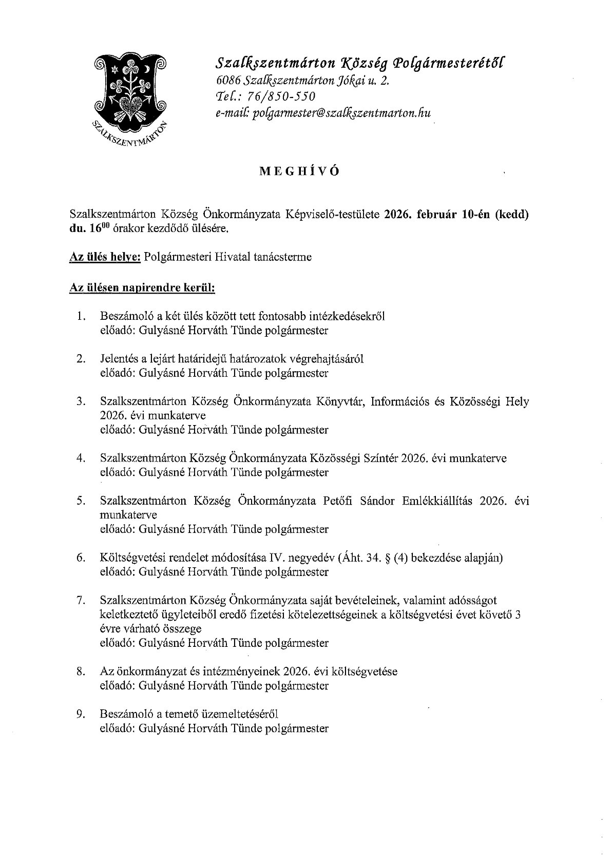 Meghívó Képviselő - testületi ülésre - 2026. február 10.