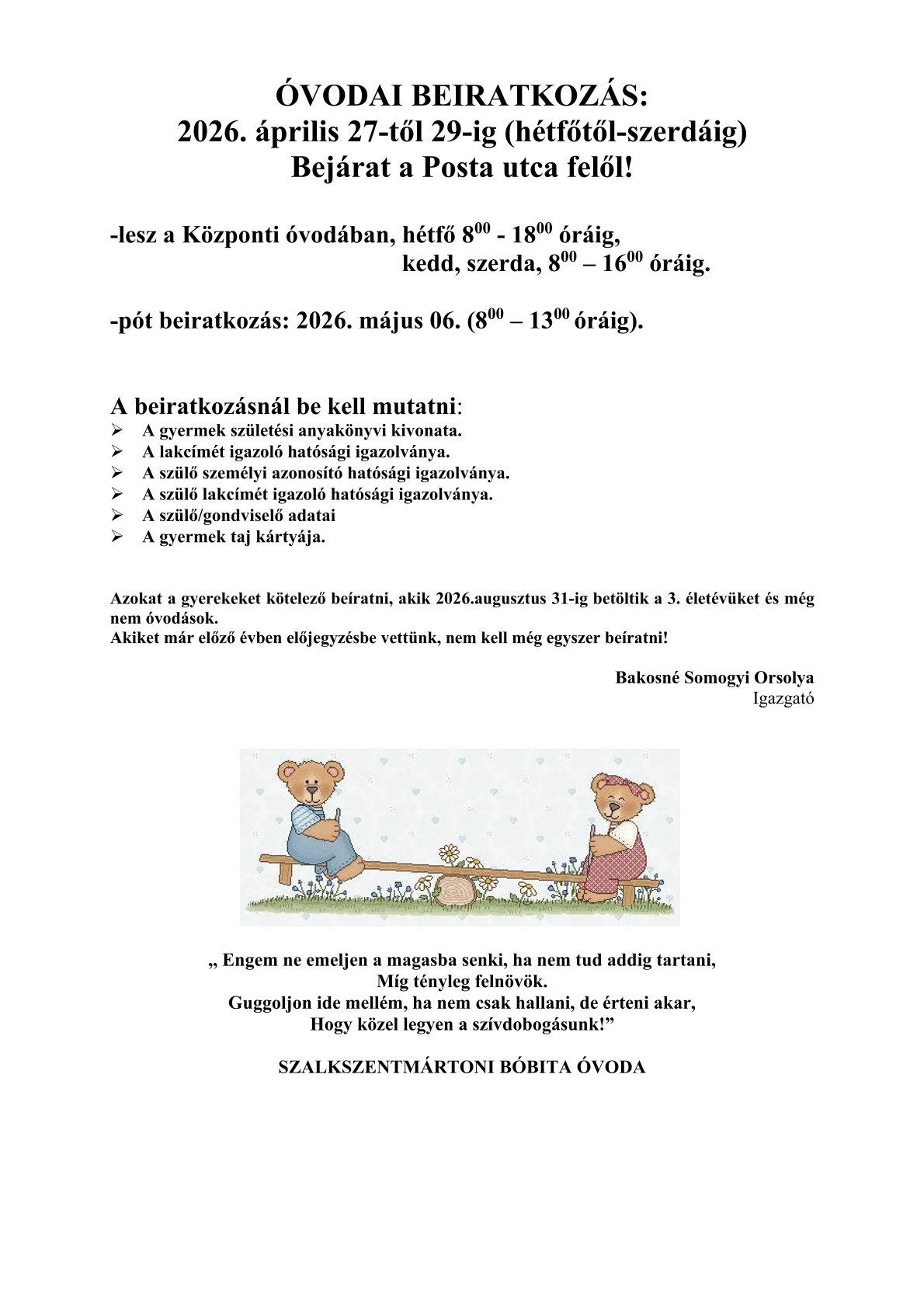 Óvodai beiratkozás 2026.